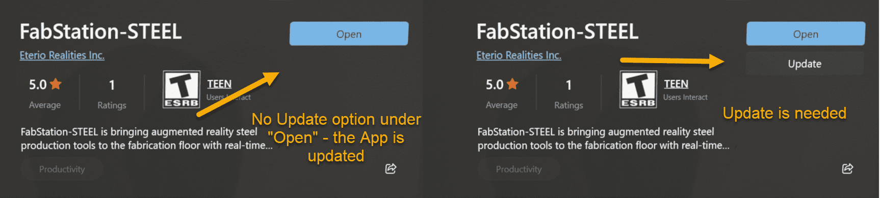 2. Click on “FabStation – Steel” App and check if there is an option to Update it under the button “Open”