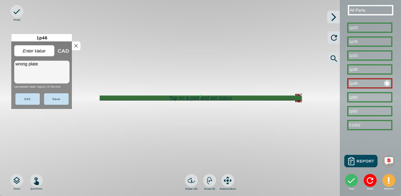 Within this task, inspectors can review parts and mark any that do not meet requirements.