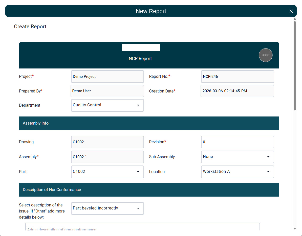 If a defect or issue requires documentation, you can submit a Non-Conformance Report (NCR).