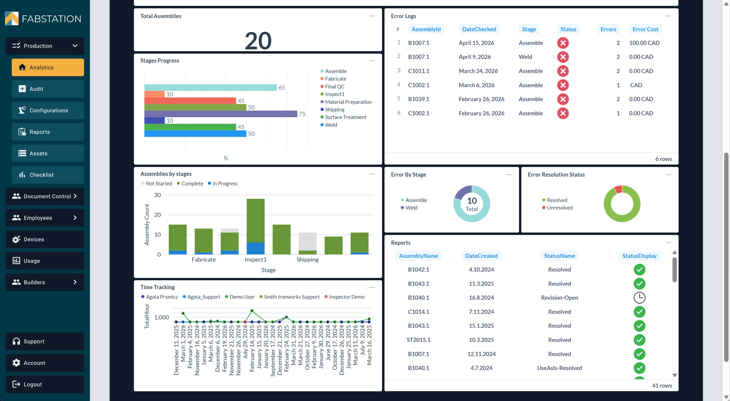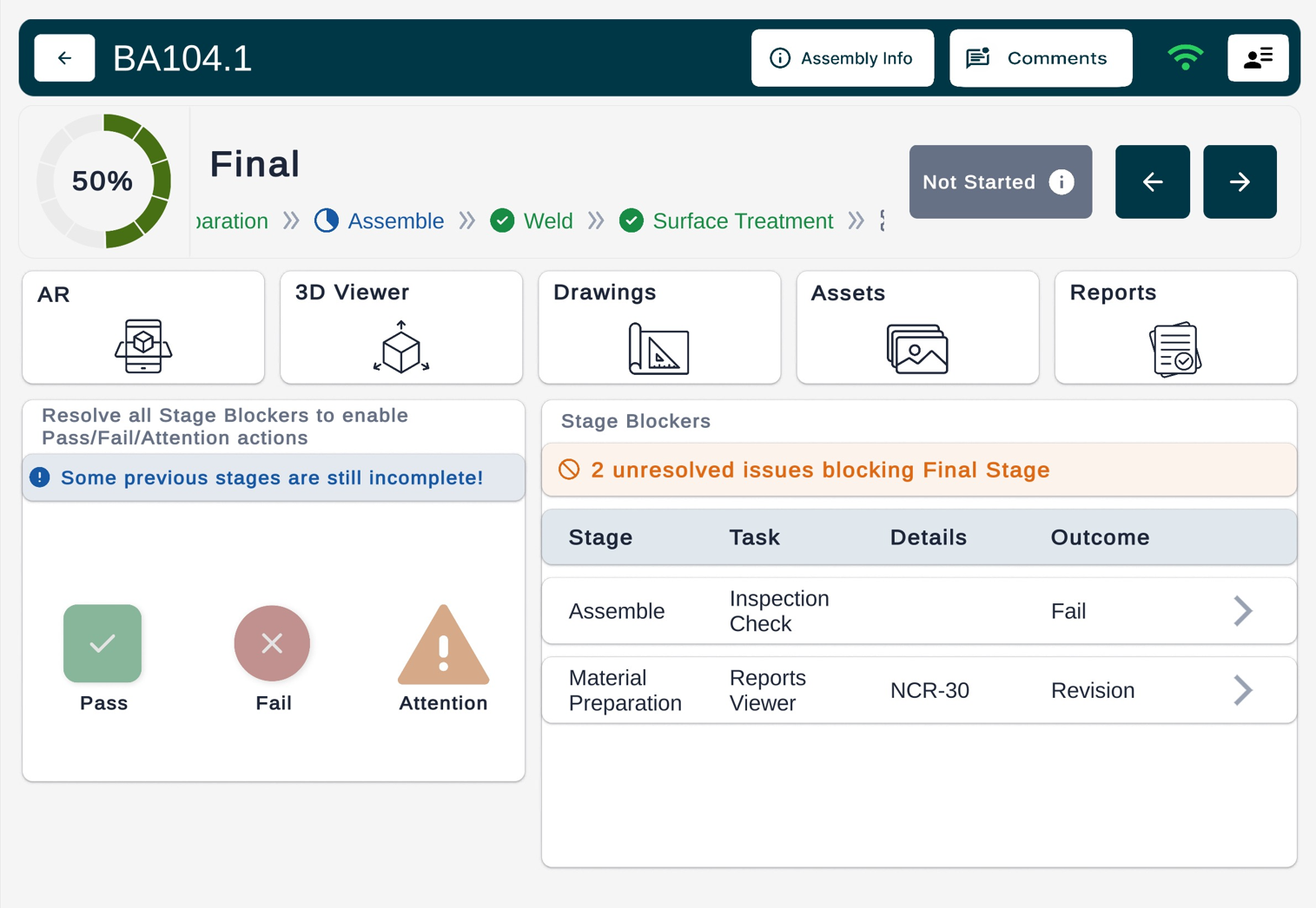You can easily track unresolved errors in your workflow using Inspection Check, Reports, and the Final Stage in FabStation. This ensures that issues are properly documented and resolved before an assembly moves forward.