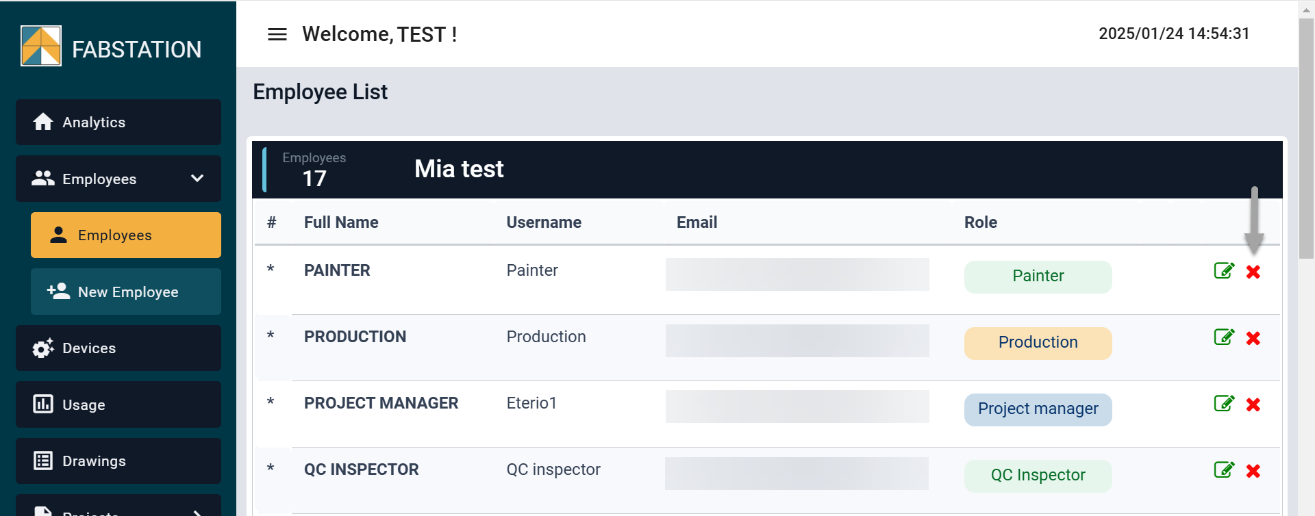 In this article, you can learn how to: add, edit and delete an employee within Employee section of the FabStation Web Portal.