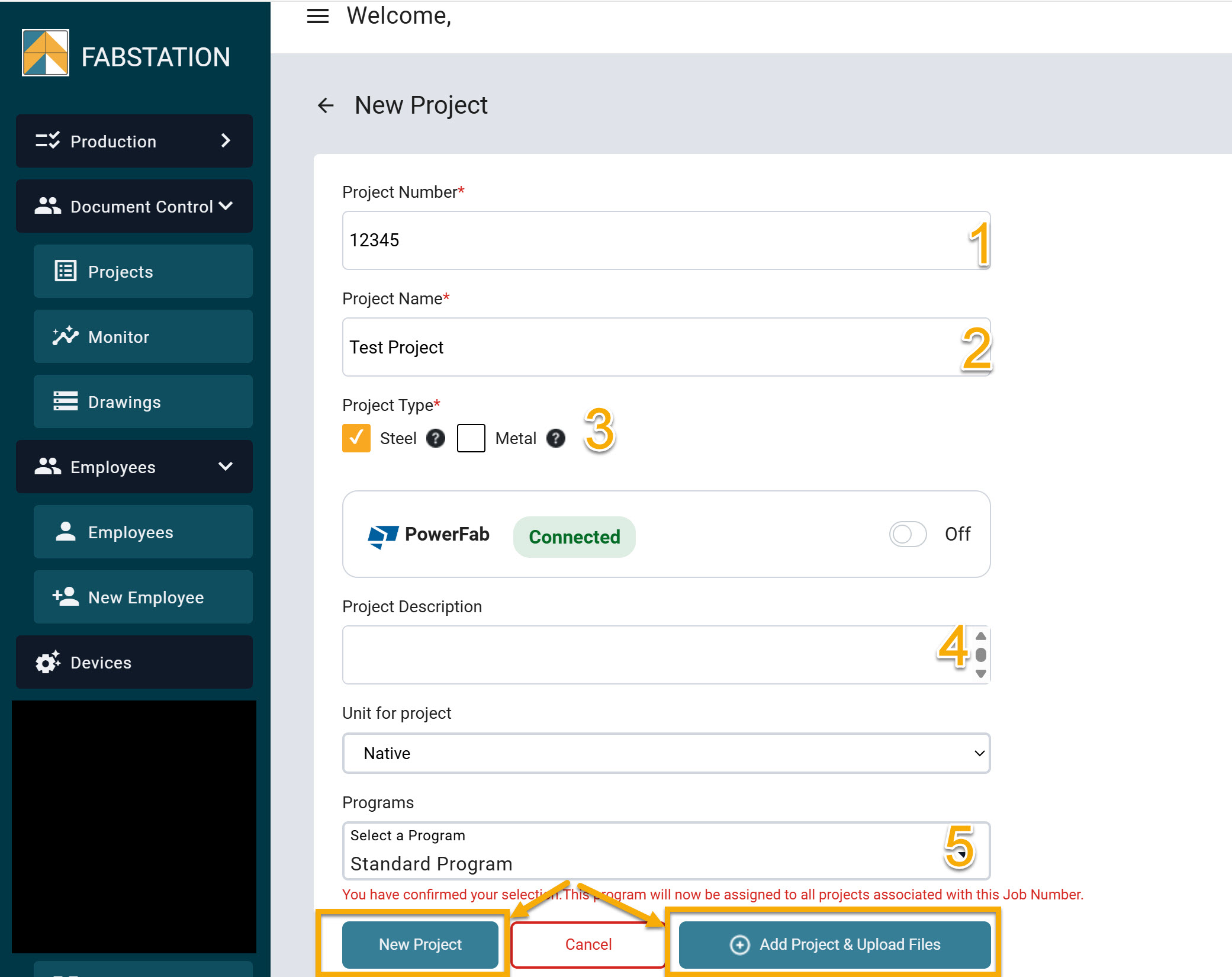 3. Project Type: Choose Steel or Metal (mandatory). If Project Type is not available to you but you need access to Metal projects or you work with different file formats, please contact support@fabstation.com