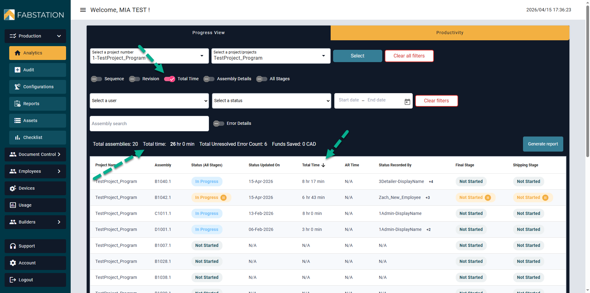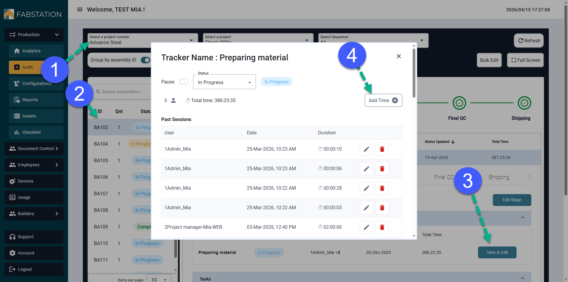 FabStation includes Time Trackers and Production Tasks. These tools help you document the work completed, maintain accountability, and support quality control throughout production.